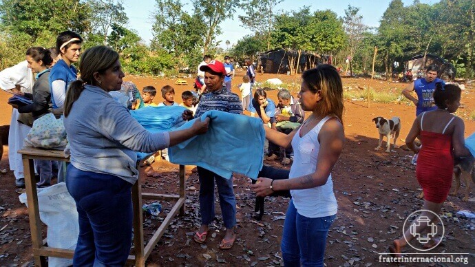 Missionários distribuem mantimentos, medicamentos, roupas, mantas, escovas de dentes e materiais escolares.