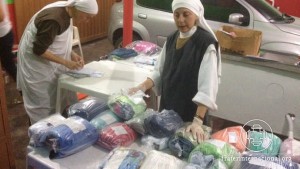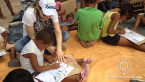 Distribuição de roupas no período da tarde e atividades com as crianças.