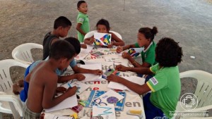 Crianças participaram de aulas de alfabetização no idioma warao e de higiene bucal.
