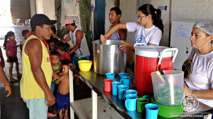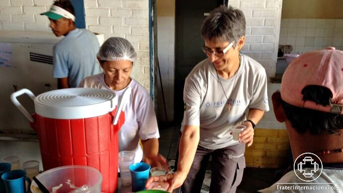 Professora de educação física, que realiza trabalho quinzenal com os jovens e adultos do CRI – Centro de Referência ao Imigrante, ofertou o almoço no centro.