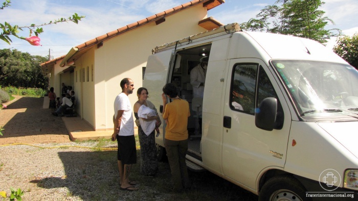 The service of assistance started in the morning, went on until the beginning of the afternoon and attended the people. Those who arrived awaited in a small queue until they were attended in the Dental Van, prepared as a mobile Dental Office, and parked beside the Cure Unit at the House Light on the Hill. The services performed during the Voluntary Group Service aim at the relief of suffering, and focused especially on emergencies. Obturations and teeth extractions are made, and instructions about oral hygiene are shared with the public.