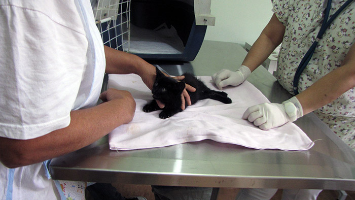 While the animal is being attended, the volunteers learn about several procedures and the correct application of medicines. Another treatment takes place in the assistance room in which a cat has been rescued from a car injury with fractures in the body. The medicine initially given in the first days of emergency was inadequate, and may have caused other problems. “It is important to consult someone who has scientific knowledge to receive the correct guidance”, explains the veterinarian Márcia Bacco to the group of volunteers.