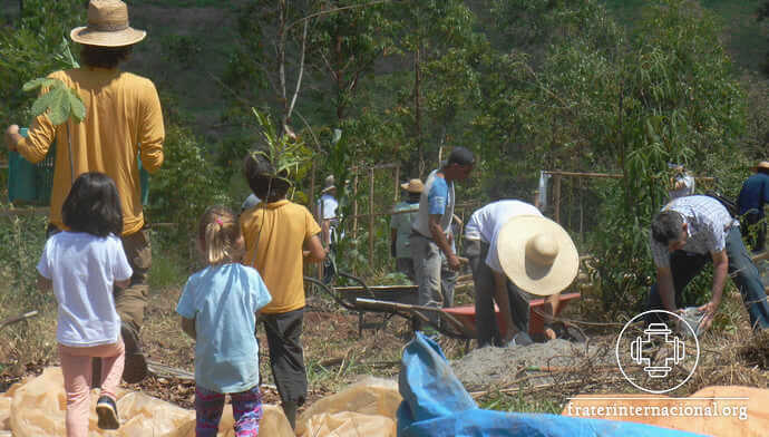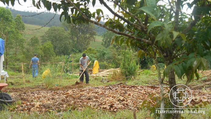 An embryo of forest was created in one area of the Lands of the Fraternity, one of the hosting areas of the Community-of-Light of Figueira, in the region of Carmo da Cachoeira city, state of Minas Gerais, Brazil. The creation of the forest took place during the Third Meeting with the Trees, held in the Lands of the Fraternity, from November 10th  to 13th, this year,  and had the participation of 25 collaborators.  Two hundred and twenty (220) seedlings of native trees of the savannah of Minas Gerais (tropical savannah) and of Atlantic Forest were planted.