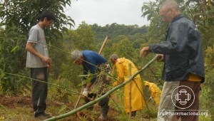 The group also worked the ground, preparing the contour lines  to allow the rainwater to penetrate into the soil and collect some moisture.  Structures were also put by using pieces of bamboo, in H shape, to make easier the landing of the local birds.