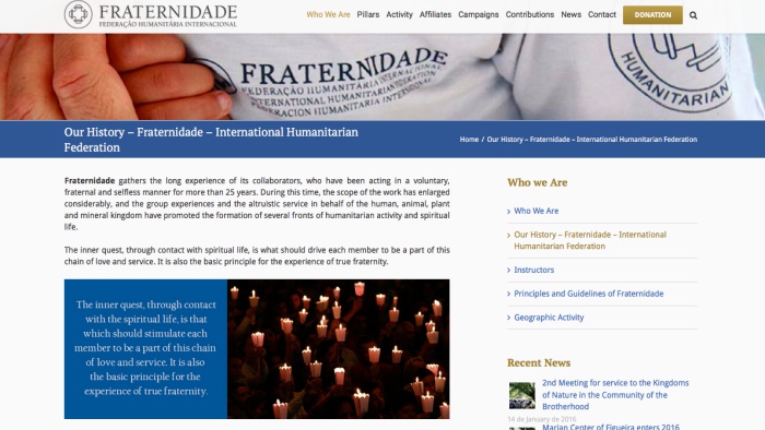 The Web Portal of the Fraternidade – International Humanitarian Federation was launched in Portuguese on November 18, 2015 and has already transformed the life of many people. In less than two months the headquarters of the Fraternidade, located in the town of Carmo da Cachoeira, Minas Gerais, Brazil, has received through the Portal many offerings of voluntary service from various parts of the world.