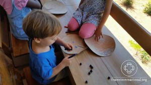 In the end, each participant could choose between three activities. One was to complete the drafting of the mandala (the picture of the heart) using the elements collected on the way, such as flowers, leaves, branches, etc. Another was to manufacture a wreath to be worn on the head, or the activity of planting lilies around the Monastery of the Sacred Charity of Saint Joseph. The meeting ended with a snack and the intonation of the song ‘The Blessed’. “The song was a moment of thanks to God for the shared experience, asking Him to make the peace that we could enjoy reach all children on the planet”, concluded sister Maria Inmaculada.