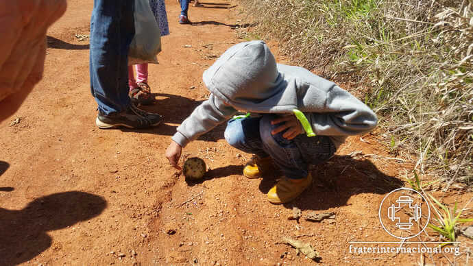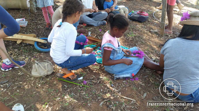 In the end, each participant could choose between three activities. One was to complete the drafting of the mandala (the picture of the heart) using the elements collected on the way, such as flowers, leaves, branches, etc. Another was to manufacture a wreath to be worn on the head, or the activity of planting lilies around the Monastery of the Sacred Charity of Saint Joseph. The meeting ended with a snack and the intonation of the song ‘The Blessed’. “The song was a moment of thanks to God for the shared experience, asking Him to make the peace that we could enjoy reach all children on the planet”, concluded sister Maria Inmaculada.