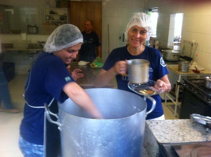 The participants of the Missionary of peace Experience of November, in partnership with the House Light on the Hill, fixed and distributed 6 kilos of pasta in the district Bom Retiro, in the town of Carmo da Cachoeira, Minas Gerais, Brazil.