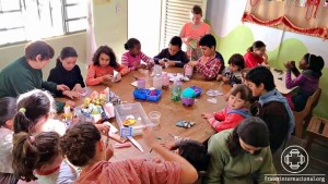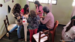 With the proposal of an integration and of a loving strenthening between the members of the groups of service of the Nucleus-of-Light of Figueira in São Paulo and the group of Art Education School of the House of Light on the Hill, a joyful and colorful activity of service was conducted last September 4, in Carmo da Cachoeira, Minas Gerais, Brazil. The task was developed with 42 children, in a building of Unity and Fraternity. Some mothers of students participated as volunteers, giving support to the six Network-of-Light members of Sao Paulo, Santo Andre and Sao Bernardo do Campo.