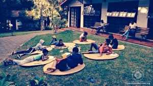 The children had guitar and yoga classes, picked fruits from the orchard, drew and painted mandalas, played with cubes and rolled on the grass. Some of them also participated in activities of maintenance of the Nucleus-of-Light, together with the volunteer that is responsible for this task. At the snack-break, there was a lot of fruit, such as tangerine, guava and watermelon, besides bread with banana sweet and guava sweet made by volunteers.