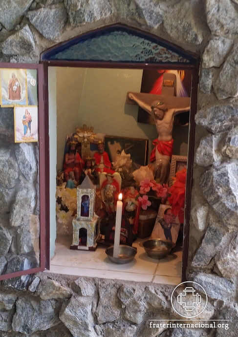 From the dusty sofa, where he spends most of the day, he points to a ramshackle radio and shares that every day he listens to the Holy Mass and prays the Holy Rosary and the Chaplet of the Divine Mercy. Then he begins the report of experiences, who knows if real or imaginary. Everrything is interrupted when the clock announces three o’clock p.m. An inner voice seems to tell him it is time to tune in the radio, and he obeys. The visitors understand and, wishing him that the Love of God keep accompanying him, they say good-bye: “Until the next visit, Mr. Pedro!” He thanks with the greatest smile that his disfigured face permits him to form and he wishes to all “May Our Lord Jesus protect you”. From a distance, it is possible to see him leaning with difficulty over his faithful companion, the old radio device, to continue his daily ritual.