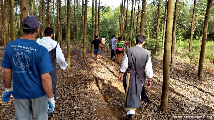 Finaliza la Misión Paraguay. Los misioneros ayudan a los indígenas de la comunidad de Puerto Barreto a reunir la madera para la construcción de la Casa de Oración y Cura.