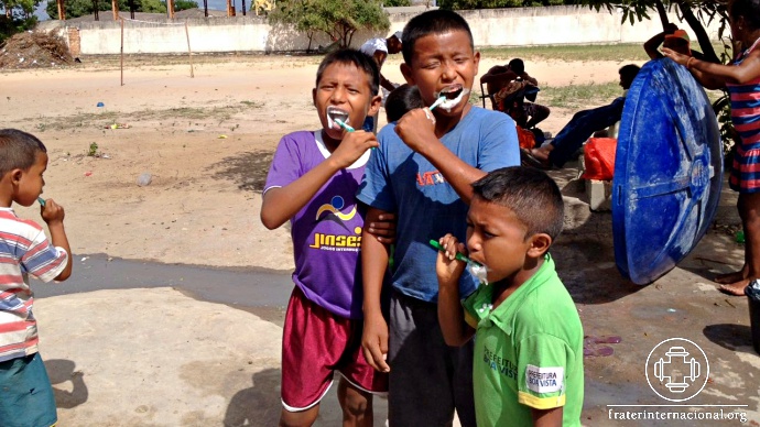 Actividad de educación y salud con los niños. Ellos participaron con bastante alegría de una clase de higiene bucal.
