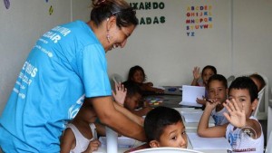 «La experiencia de estar viviendo, aunque de forma temporal, en un contexto totalmente diferente de aquel en que siempre viví», nos cuenta la maestra Omeris. «Donde todos están juntos, familias enteras, parientes, amigos, desconocidos, muchos niños, y todos carentes de todo lo que se pueda imaginar», ella exterioriza, «El proyecto de educación llegó a la hora correcta. Aporta interacción entre padres e hijos, padres con padres, hijos con hijos, entre todos los de esta comunidad de albergados».