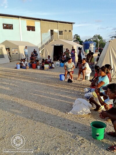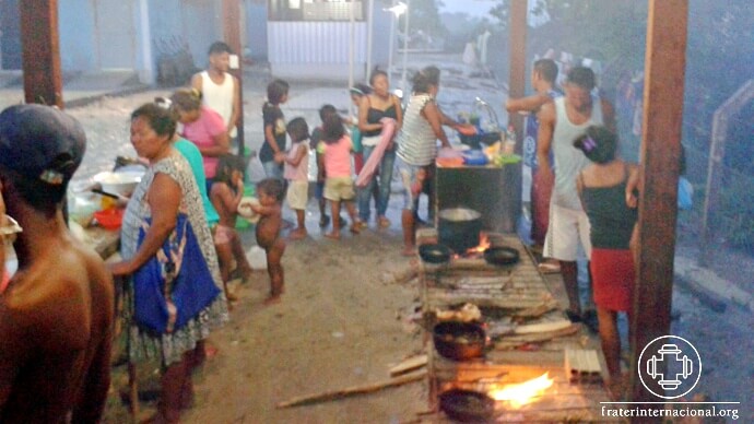Se hizo la visita semanal al condominio en donde están alojadas 35 personas venezolanas, entre indígenas y no indígenas. Antes de la ocupación, este condominio era un lugar bastante precario y semiabandonado. Ahí no hay energía eléctrica, solo tiene agua. Se hizo una lista con las necesidades de los habitantes: alimentos, medicamentos, ropa, mosquiteros y otras carencias.