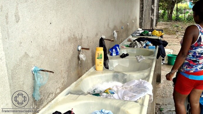 Después del fin de año, el martes 2 de enero, los misioneros de la Fraternidade – Federación Humanitaria Internacional – trabajaron en la estructuración y en la organización de la Casa de Paso, el abrigo destinado a los inmigrantes venezolanos en la ciudad de Pacaraima. Dadas las festividades de fin de año, había mucha suciedad y algunos refugiados embriagados. Los grifos de los lavamanos estaban dañados.
