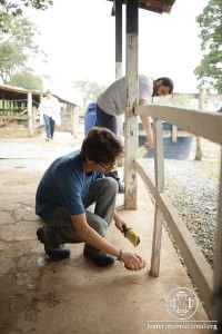 Os jovens missionários auxiliaram na limpeza das baias, especialmente retirando teias de aranha do telhado. A cerca de madeira que circunda o local foi pintada e as rações dos animais foram organizadas.