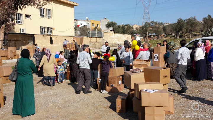 Na cidade de Izmir (Esmirna), Missionários participam com a equipe da ASAM na distribuição de suprimentos (alimentos, cobertores, roupas, materiais de limpeza etc) para os refugiados.